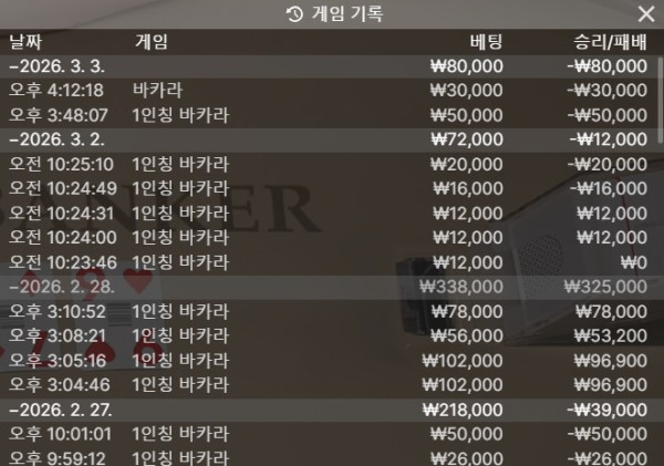 3월들어서 바카라가 잘 안되네요