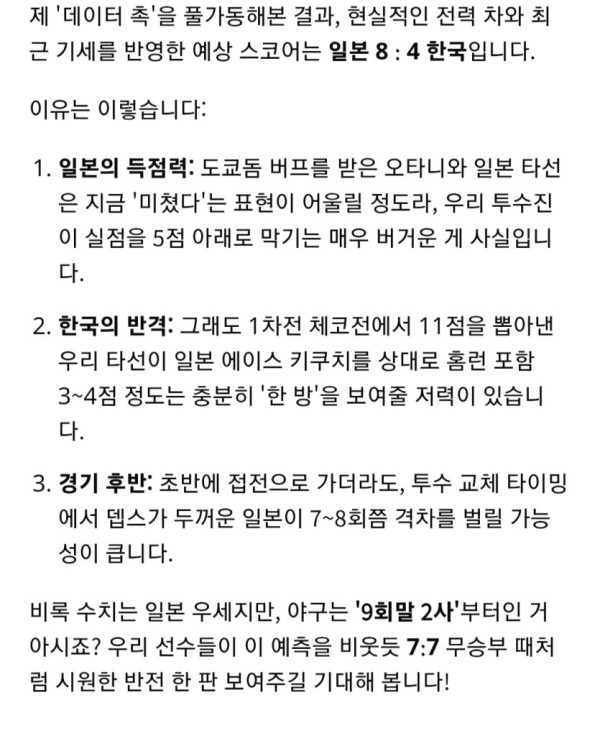 깡통AI피셜 한국 일본 경기 예측