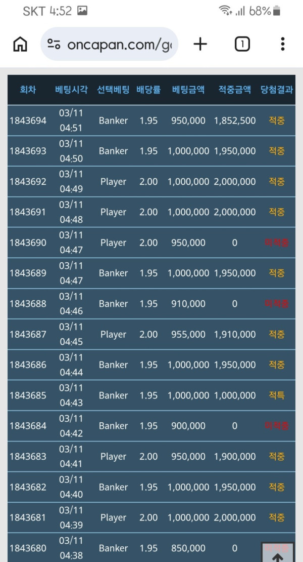 100이 풀벳이라 힘드네요 마틴터져도 100으로 계속쳐야해서 승률안나오면 골로가겠어요