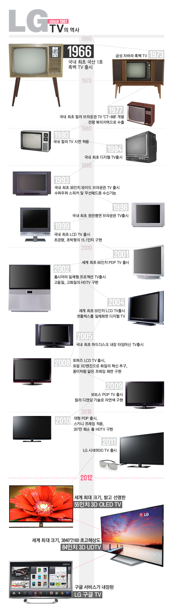 이후 삼성과 LG를 중심으로 티비기술과 화질의 비약적인 발전이 이뤄지며 브라운관에서 LCD와 PDP. UDTV와 올레드기술로 진화하며 티비의 대형화 스마트화로의 혁신이 이뤼진다