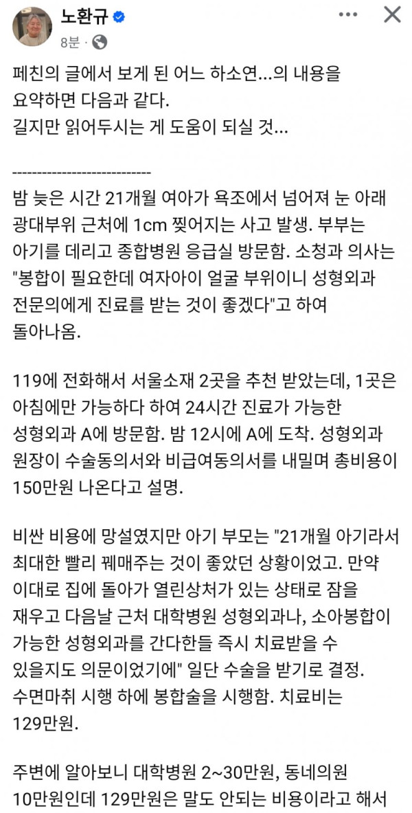 21개월 아기의 봉합수술 후 민원넣은 부모