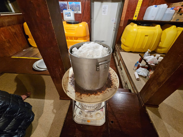 물이 귀한 겨울철이니 난로에 녹여 물을 만든다