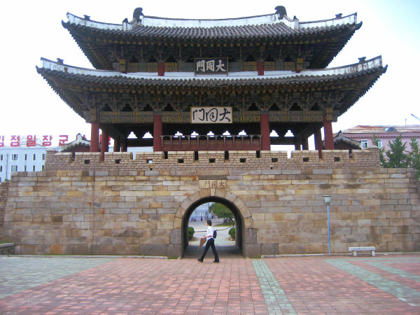 북한 평양의 대동문도 서로 다른 서체의 한자를 병기하고 있고