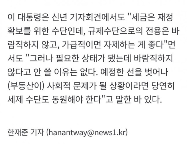 李대통령 "다주택 양도세 중과 유예, 재연장 생각했다면 오산"
