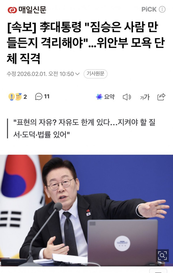 [속보] 이 대통령, 위안부 모욕 단체에 "사람이라면 이럴 수 없는 것"