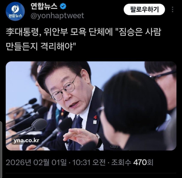 이재명 대통령이 '평화의 소녀상' 철거를 요구하며 위안부 피해자를 모욕한 혐의로 수사받는 단체를 향해 "사람이라면 이럴 수 없는 것"이라고 강하게 비판했습니다. 이 대통령은 오늘(1일) 오전 SNS에 "억지로 전쟁터