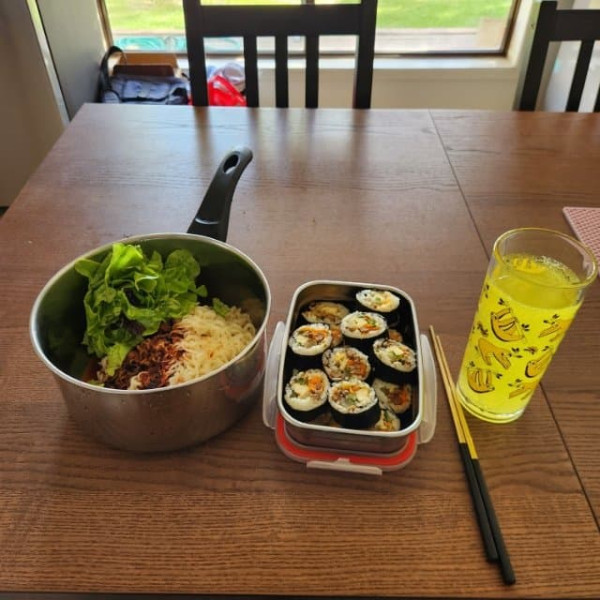 아주머니가 비행기서 드실 김밥에 당근을 제공했더니 내 것까지 싸주셔서 저녁으로 먹었다.