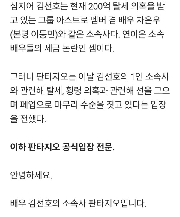 김선호도 수상한 법인···차은우와 ‘판박이’ 1인 기획사