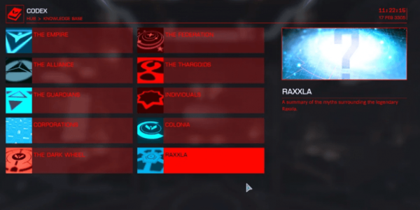 그러나 미션이 삭제된 지 약 3년이 흐른 2018년. 정말 뜬금없이 게임 내 코덱스에 락슬라, 다크 휠, 옴팔로스 리프트 등의 항목들이 추가되었다.