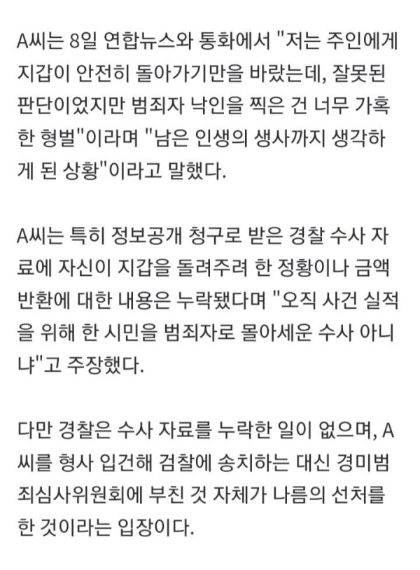 주인 "처벌 원치 않아" 의사에도 즉결심판 벌금 5만원에 "잘못된 판단이었지만 범죄자 낙인은 가혹"…경찰 "이미 선처" 홀어머니를 모시고 사는 50대 요양보호사 A씨는 작년 5월 17일 밤 지하철 5호선 영등포시장역