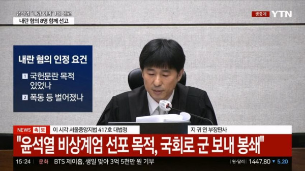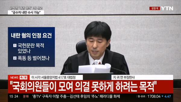 [긴급] 지귀연 "내란죄는 국가 존립을 침해하는 죄"