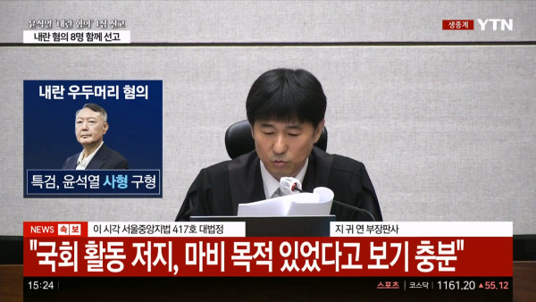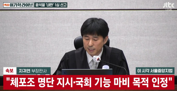 속보) 지귀연 "윤 비상계엄, 국회 막을려고 선포"