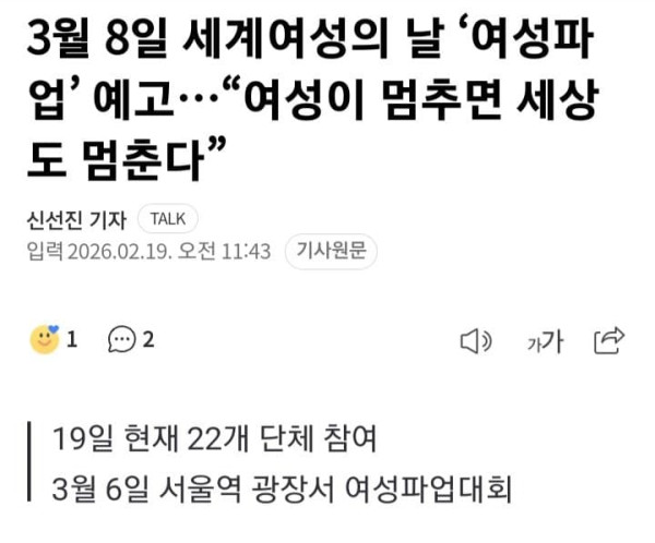 ‘여성파업’ 예고…“여성이 멈추면 세상도 멈춘다”