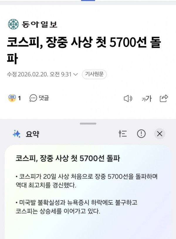 [속보] 코스피 5700 돌파 & 5800도 돌파