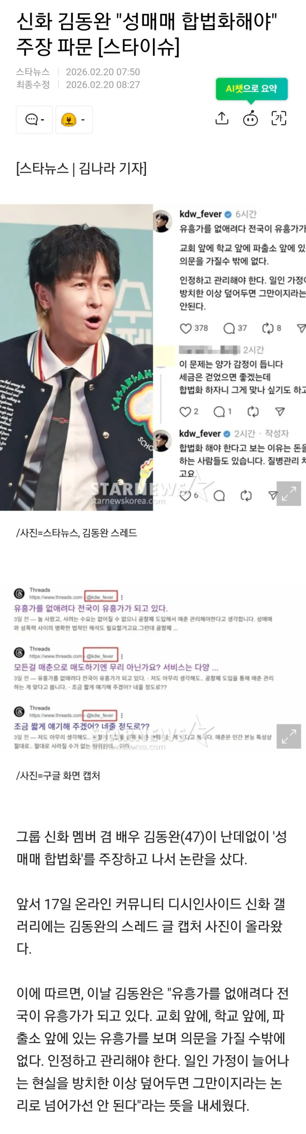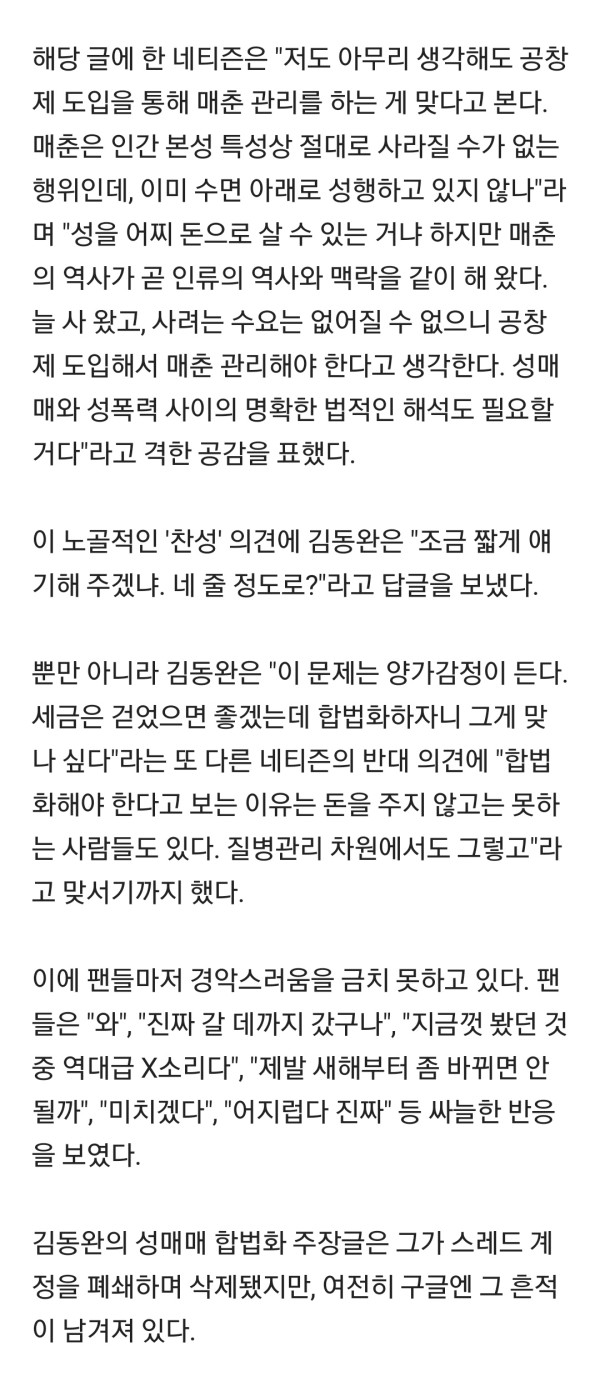 신화 김동완 성매매 합법화 주장 더쿠 반응