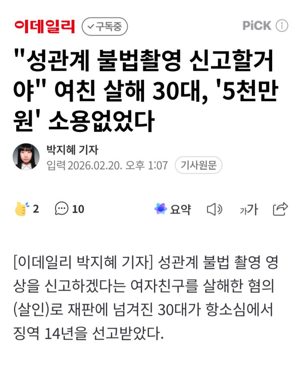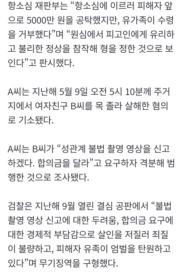 "성관계 불법촬영 신고할거야" 여친 살해 30대, '5천만원' 소용없었다