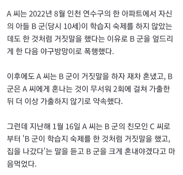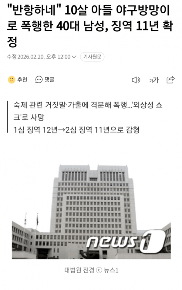"반항하네" 10살 아들 야구방망이로 폭행한 40대 남성, 징역 11년 확정