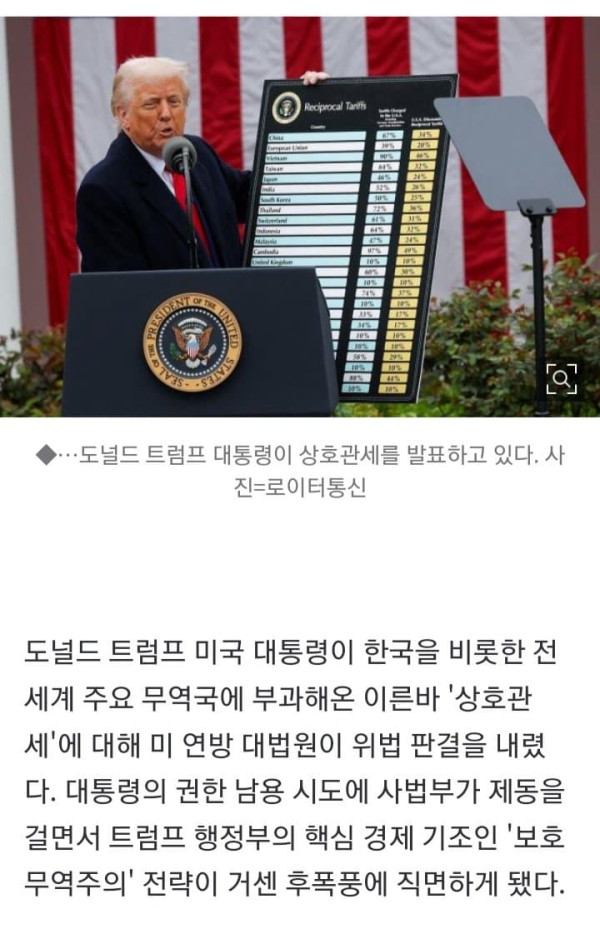 [속보] 트럼프 상호관세, 미대법 무효 선고