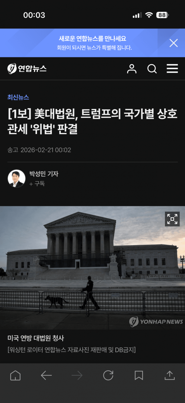 [1보] 美대법원, 트럼프의 국가별 상호관세 '위법' 판결 | 연합뉴스