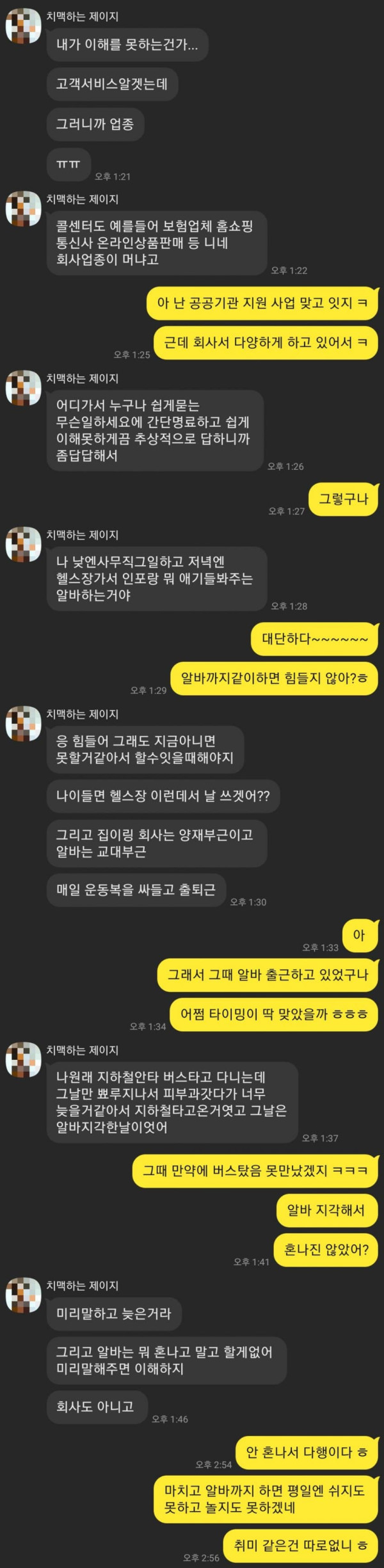 콜센터 다니는데 직업으로 전부 걸러졌다고함..