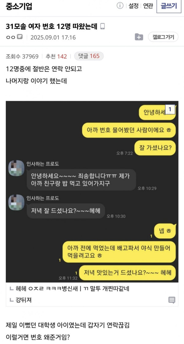 여자번따 250번 시도해본 중소갤럼