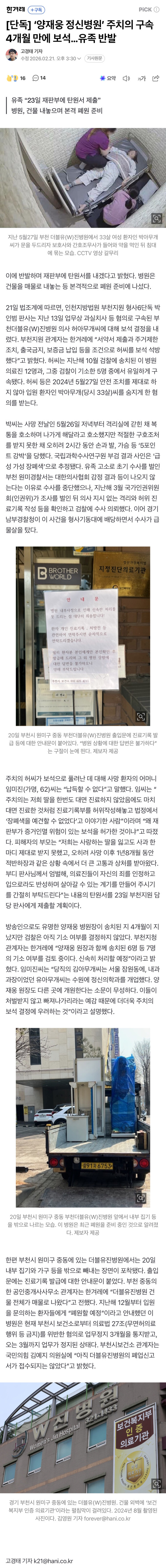 부천의 정신병원 폐쇄병동에서 격리·강박 끝에 사망한 환자의 주치의가 구속 4개월 만에 보석으로 풀려나자, 유족들이 이에 반발하며 재판부에 탄원서를 내겠다고 밝혔다. 병원은 건물을 매물로 내놓는 등 본격적으로 폐원 준