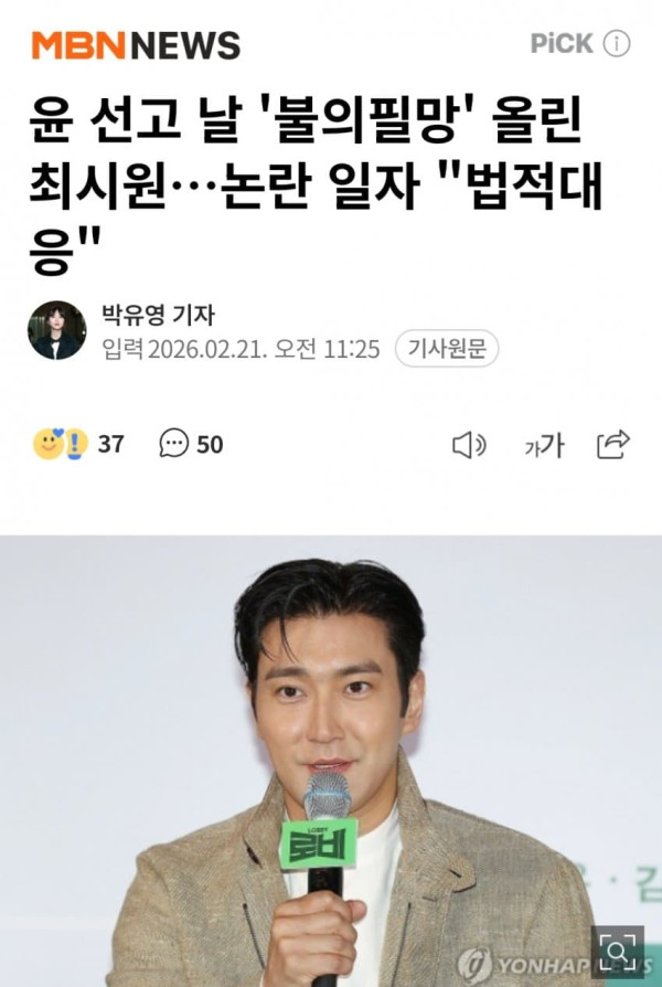 그룹 슈퍼주니어 멤버 겸 배우 최시원이 윤석열 전 대통령의 무기징역 선고 당일 SNS에 올린 글이 논란으로 번졌다. 소속사 SM엔터테인먼트는 악성 게시물 작성자들에 대한 법적 대응에 착수했다. 최시원은 지난 19일