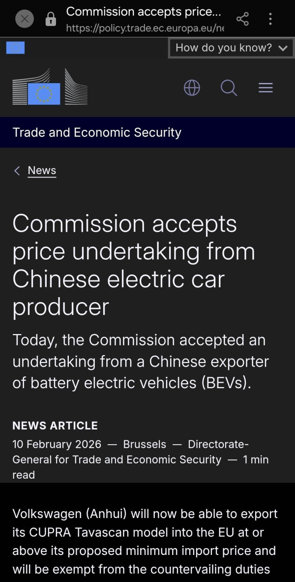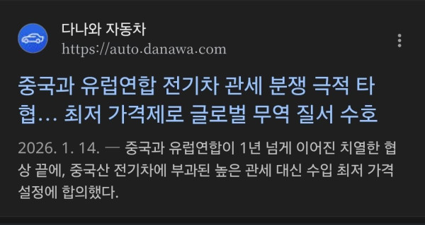 중국산 저가 자동차 공세에 밀리던 EU가 도저히 가격경쟁이 불가능해지자