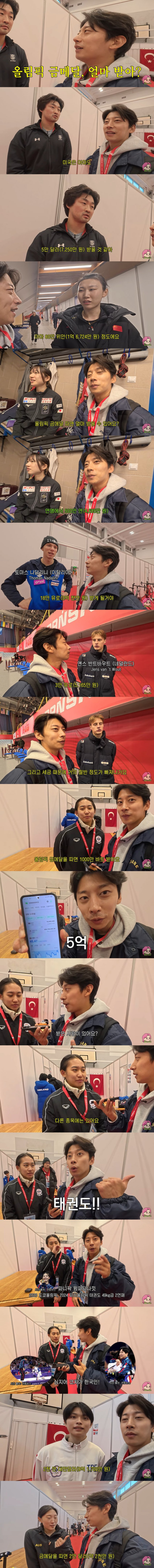 국가별 올림픽 스케이트 금메달 상금 모음