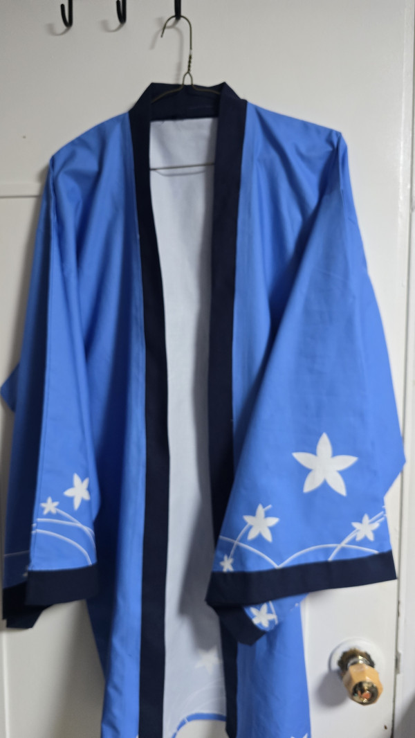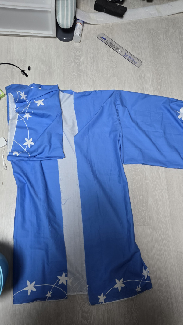 아무래도 겉옷이 아니라 담요를 뒤집어 쓴 느낌이고, 코스프레용 의상도 은은하게 빛는 원단을 써서 코스용 의상이라는 인상이 뚜렷해서 직접 만들었음
