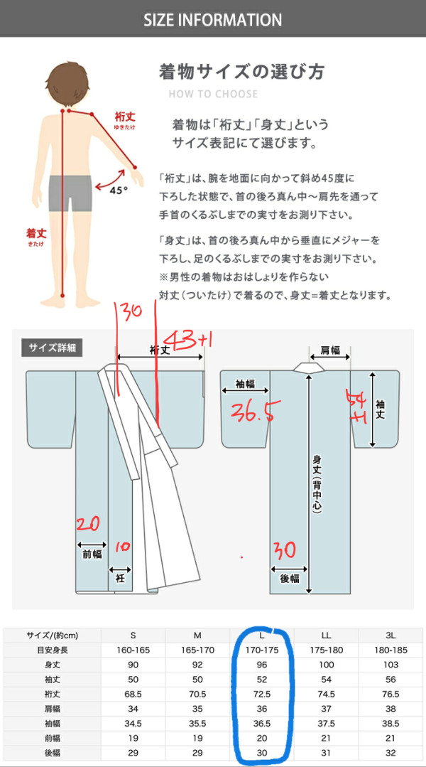 실제 하오리 표준 사이즈를 참고하여 치수를 정한 뒤