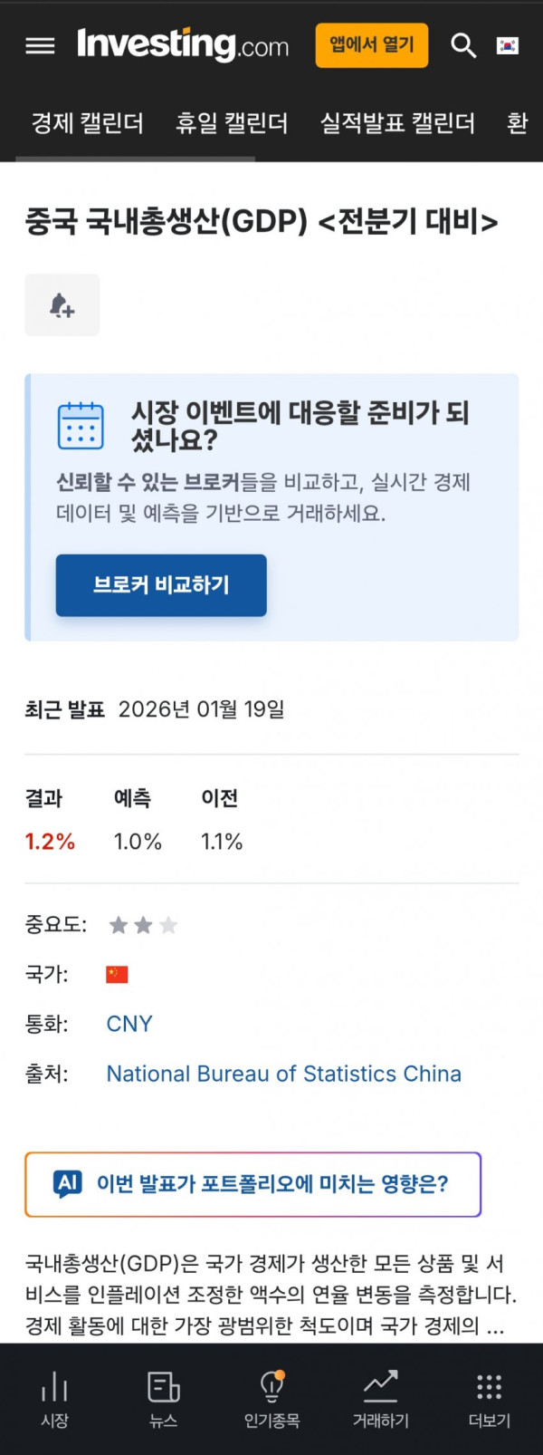 미국 성장률 1.4%가 높아보이는데 미국은 계산방법이 다름