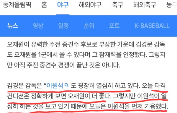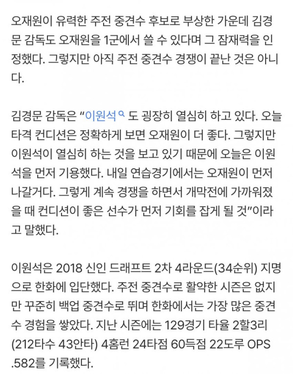 그렇지만 이원석이 열심히 하는것을 보고 있기 때문에 이원석 기용