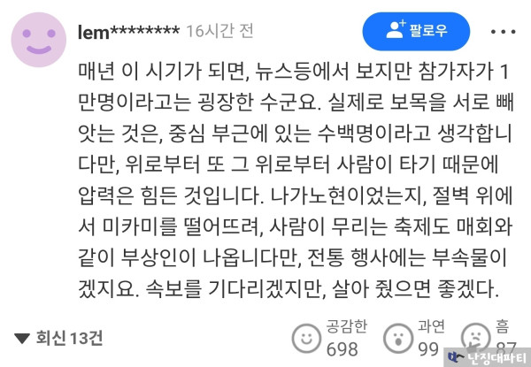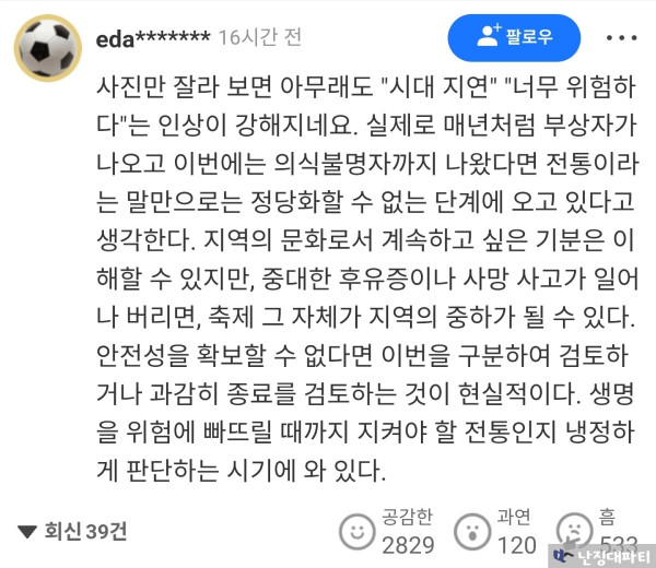 쪽국에서도 이건 이제 축제의 재미로 치부하고 넘어갈 정도를 넘었다는 분위기임