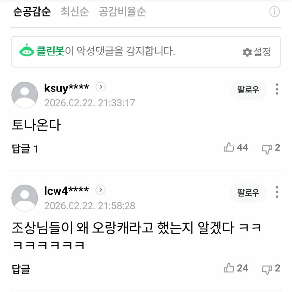 기저귀 차고 저지랄 하는 꼬라지가 역겹다는 반응이 대다수임