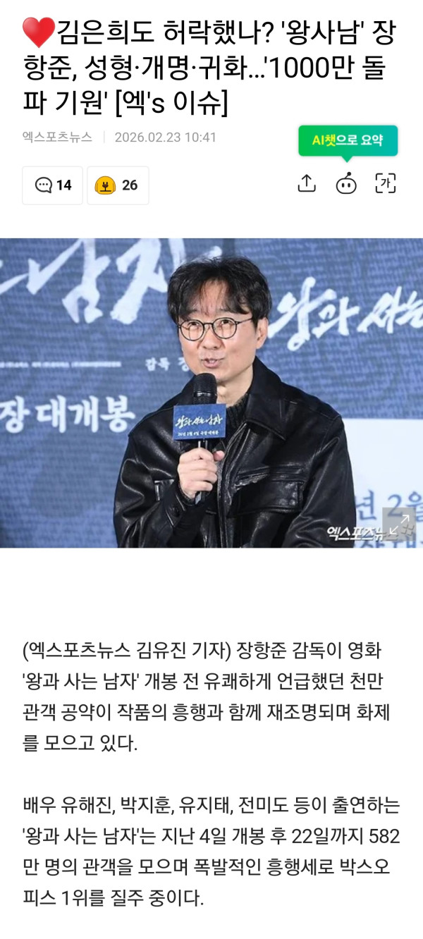 왕과 사는 남자 감독 장항준, 1000만 돌파 기원