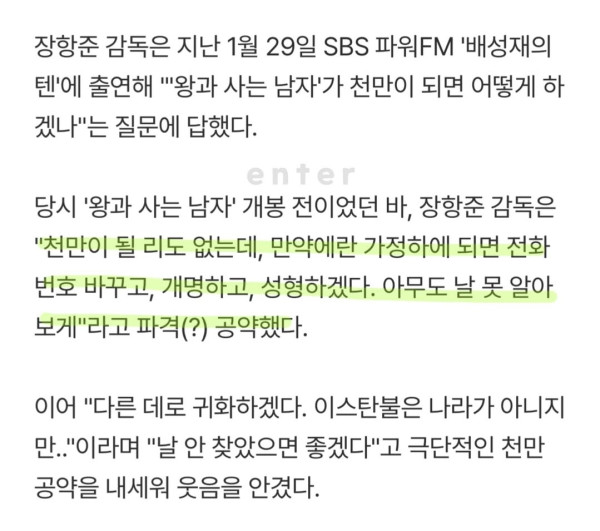 장항준 감독 공약 어쩌냨