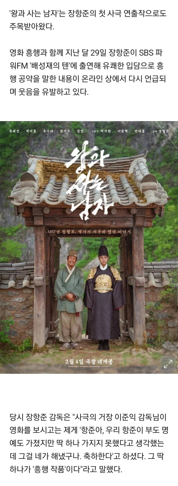 충격적인 장항준의 '왕사남' 천만 공약