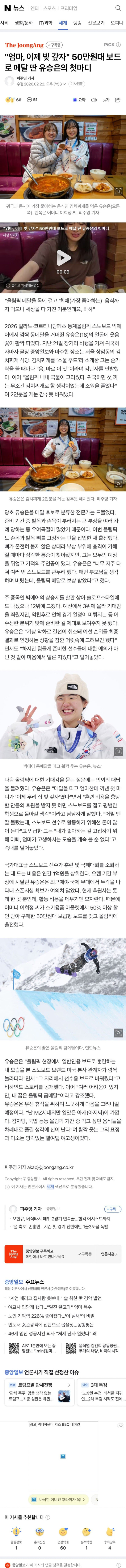 엄마, 이제 빚 갚자" 50만원대 보드로 메달 딴 유승은의 첫마디