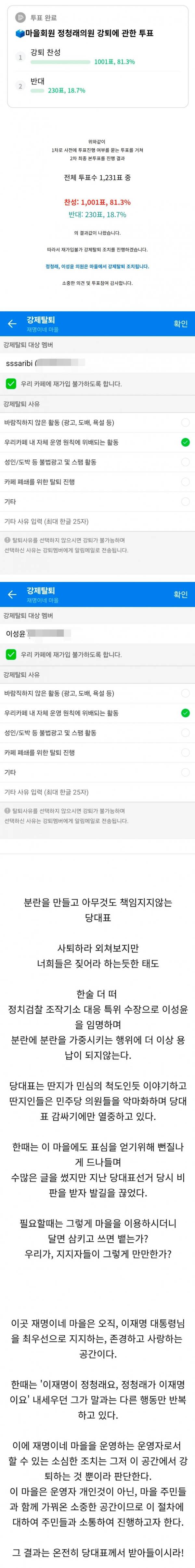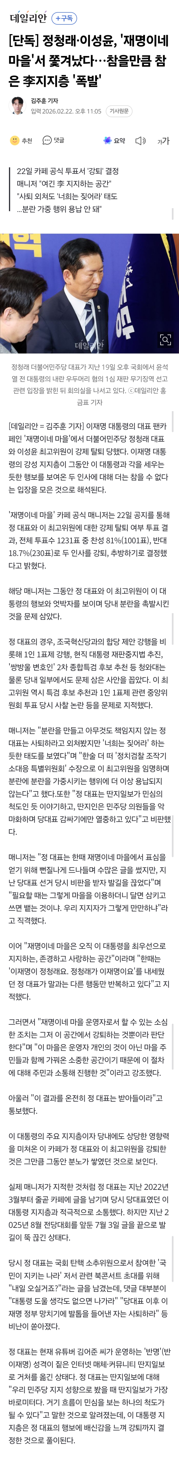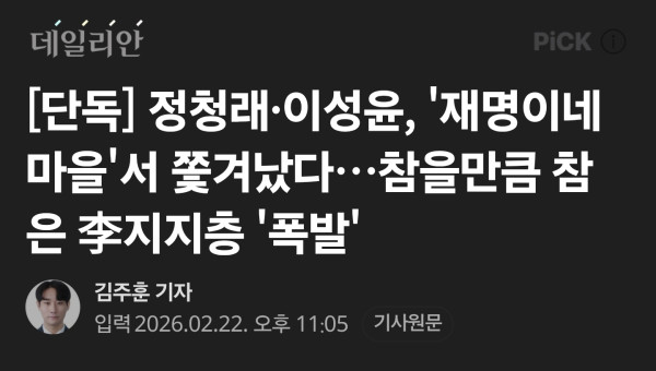 속보) 정청래 재명이네 마을에서 강퇴당함