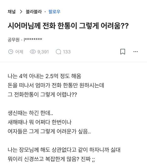 시어머니 연락에 예민한 여자들.blind