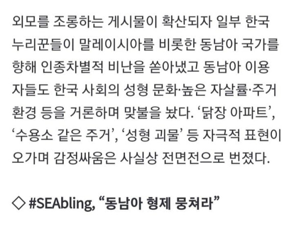원숭이 이미지에 성형 조롱...한국 네티즌들 동남아 '혐오 전면전'