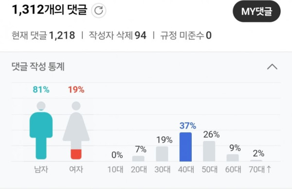 댓글 성별이랑 연령대 보면