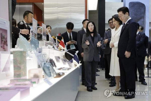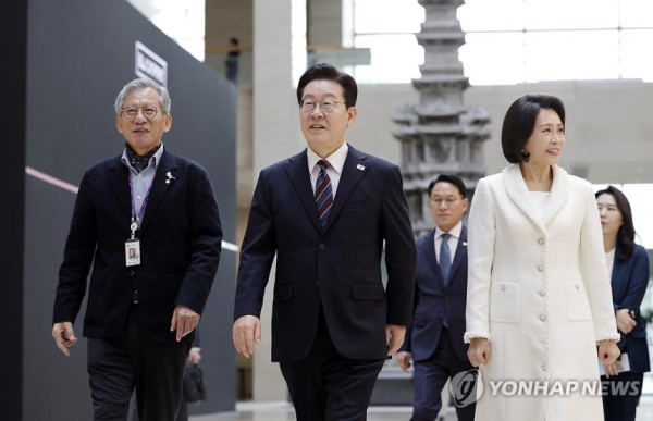 이순신 장군 초상화 관람하는 이재명 대통령 부부
