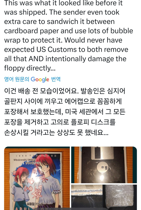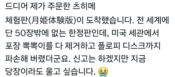 월희 체험판 구매한 양붕이 세관이 고의파손시켜서 줬네