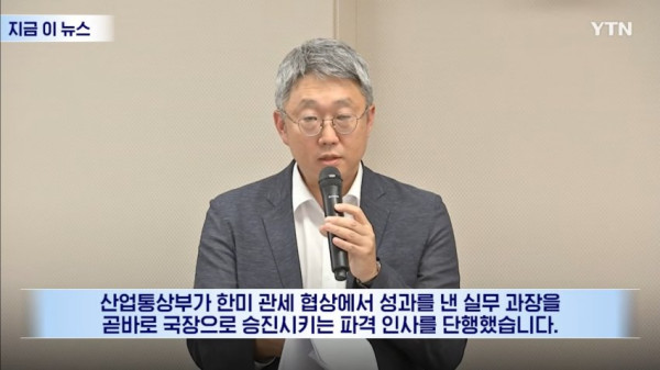 김정관 장관 "파격 승진안 건의했고, 대통령이 임명"…'성과주의' "과장 진입연차 4∼5년 낮춰"…적재적소·신상필벌·과감한 발탁 '3대 원칙' 산업통상부가 한미 관세 협상에서 성과를 낸 실무 과장을 곧바로 국장으로
