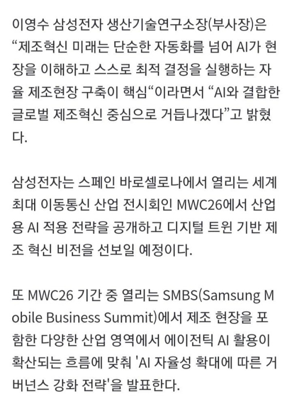 삼성전자, 2030년까지 국내외 생산 공장 'AI 자율 공장' 전환