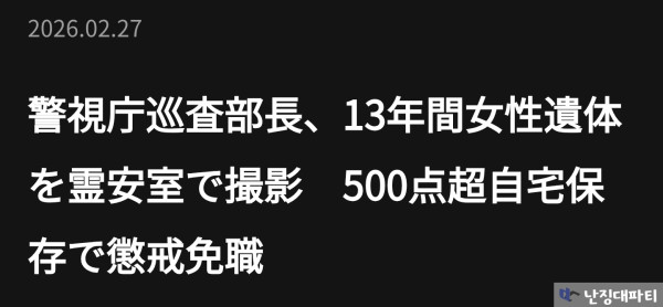 일본 도쿄도 경시청이 52세 순사부장을 징계 면직 처분했다는 소식임