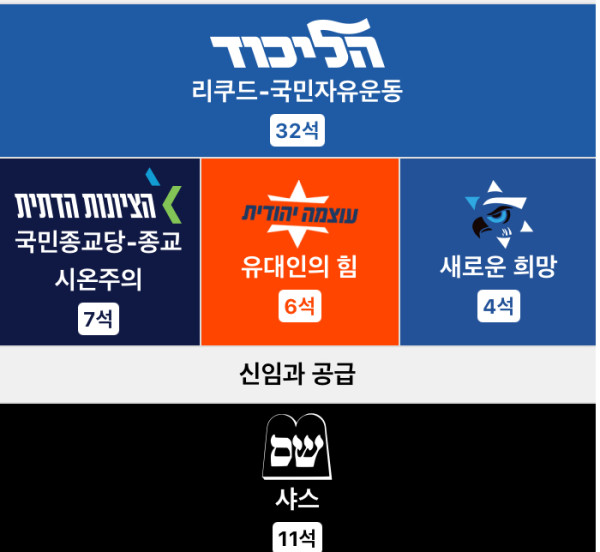 26년에는 이스라엘 총선거가 치뤄진다. 얘들은 몇석먹을지 기대된다.