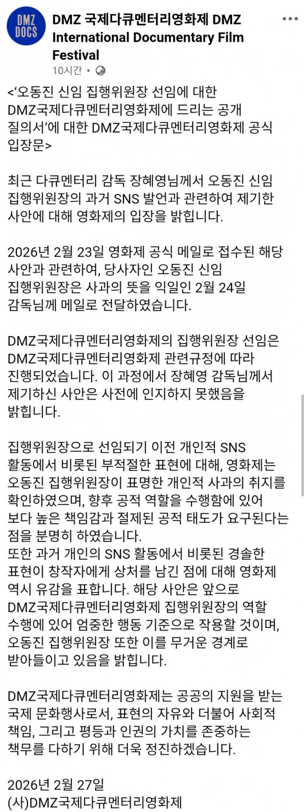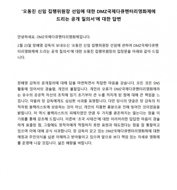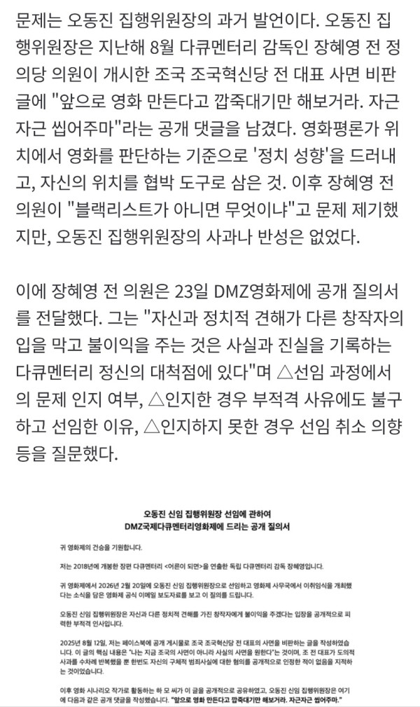 DMZ 집행위원장 논란 터졌었네